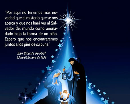 Que el Hijo de Dios, hecho hombre para hacernos hijos de Dios, nos llene de celo, coraje e ilusión para ser verdaderos evangelizadores y servidores de los pobres y necesitados. ¡Feliz Navidad y fecundo año 2017, cuarto aniversario del carisma vicenciano!